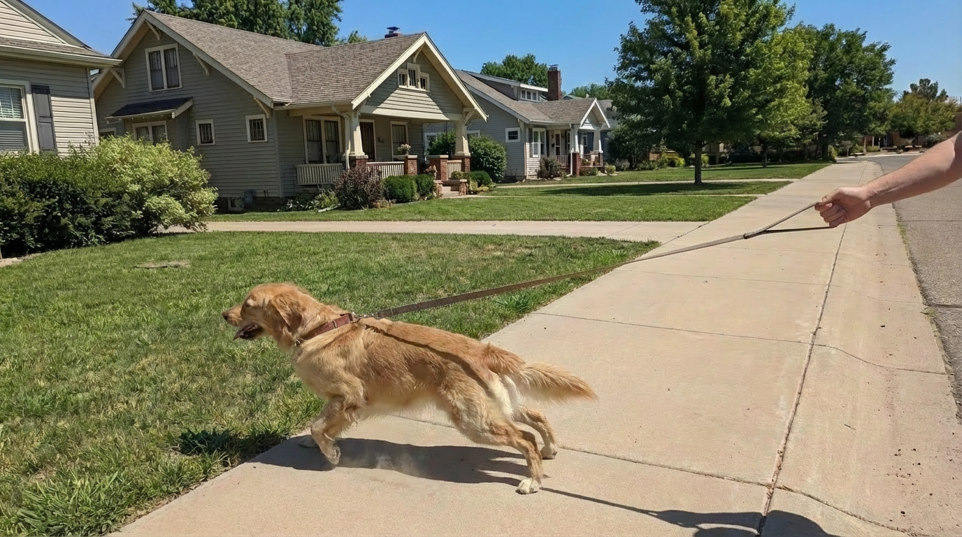 Bailey walked beside Sarah. Calmly. No pulling. No choking. Just a peaceful walk.